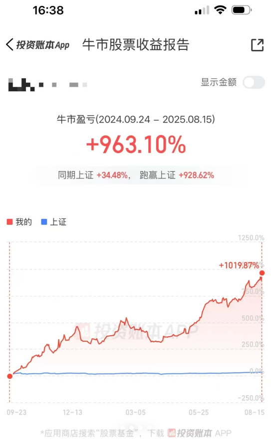 不得不说,这晒出的收益惊人,924以来收益率高达963%,近乎10倍。