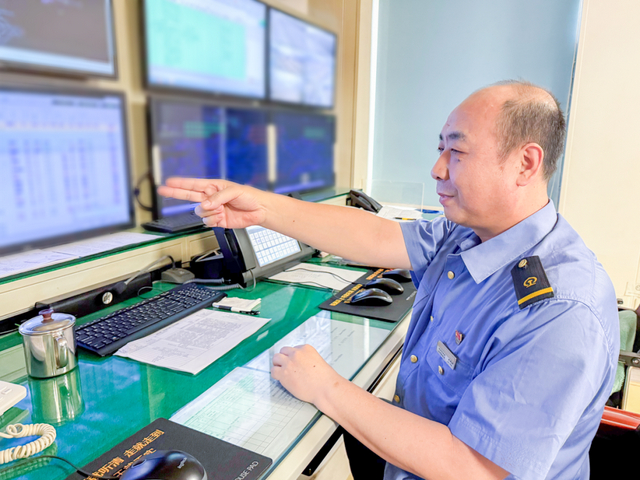 连结员肖强正拿着对讲机