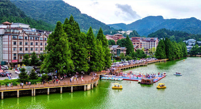 这座平均气温仅24℃的“江南香格里拉”,此时正迎来一年中最为热闹的时节。沿着新修的徒步道前行,每隔百米就能与背着登山包的游客擦肩而过。