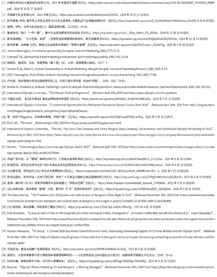 诚然,本研究也存在一定的局限性。由于数据来源主要基于公开的营销活动和社交媒体平台的传播,笔者未能全面量化两个品牌不同营销策略对消费者认知的具体影响,在后续研究中可以增加相关量化分析,以深入了解具体的传播效果。此外,本文的研究对象为2024年巴黎奥运会中的蒙牛和伊利两个品牌的营销策略,未来可尝试将“双轨竞合营销模型”应用于其他国际体育赛事或文化活动中,以评估该模型的普适性。