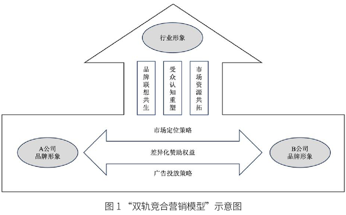 基于蒙牛与伊利在此次奥运会中的营销表现,笔者尝试推导出双轨竞合营销模型(Dual-Track Co-opetition Marketing Model),该模型指出同品类的不同品牌在赛事营销中通过“竞”与“合”两条轨道进行战略部署(见图1)。