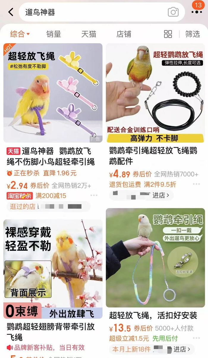 “遛狗不牵绳伤狗又伤人,而遛鸟不牵绳伤鸟又伤心。”为了“鸟好人也好”,年轻人纷纷选择在网下单了“遛鸟神器”。比如,一条售价15-30元的放飞绳,既是安全锁又是潮流配饰。