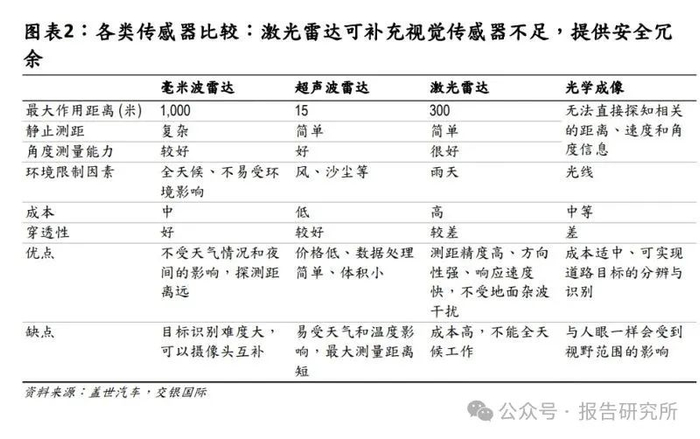 激光雷达提供安全冗余,多传感器融合方案仍是主流