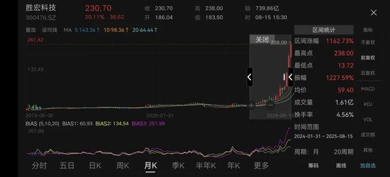 截至2025年8月15日,该公司股价自2024年以来已累涨近12倍,期间股价从每股约14元一度飙升至238元,市值一度突破两千亿元。