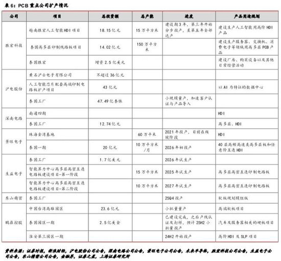 当前,多家PCB厂商加速进军AI算力领域。近年来,沪电股份、深南电路、景旺电子、生益电子、东山精密、鹏鼎控股等数家PCB相关公司积极扩产。