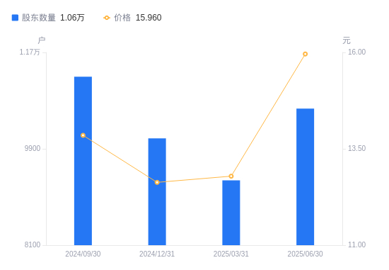 近一年(2024年6月30日至2025年6月30日),建研设计A股股东户数从1.14万户,减低至1.06万户,降幅6.87%,区间股价上涨37.82%。