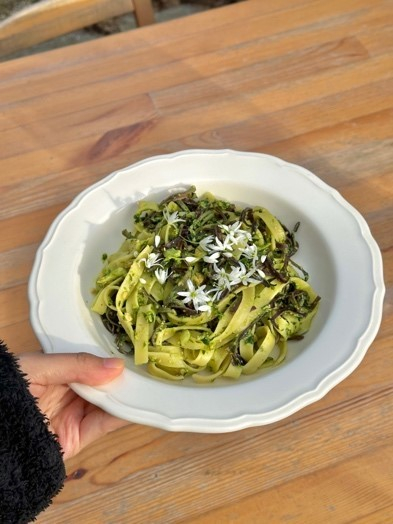 在采摘过程中,我发现很多日常见到的植物其实都可以食用,比如玉兰花、柳树的嫩芽,还有花园里自己长出来的蒲公英。如果细心观察,甚至在我每天经过的地铁站附近的草丛里,也能看到艾草。我一直以为艾草是中国特有的,没想到荷兰的杂草堆里也有。我的朋友建议我借助植物识别软件辨认植物的身份,同时需要调用感官来识别,例如长得像蒲公英的植物有很多,但如果仔细体验,会发现蒲公英的叶片背面有细密的茸毛,有的长得很像但叶片是光滑的,蒲公英的叶子是倒着的波齿,有的也有波齿但是顺着叶片方向的,蒲公英叶子都是从地面上生长,有的是长在一根主茎上。
