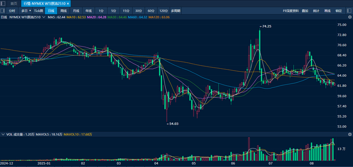 以色列与伊朗的“12日战争”6月下旬戛然而止之后,地缘溢价对油价的支撑整体趋于弱化。此外,当地时间8月15日,美国总统特朗普与俄罗斯总统普京当地时间15日在美国阿拉斯加州安克雷奇举行会晤,双方对会晤评价积极,但未就俄乌停火等问题达成协议。特朗普在会后表示,他与俄罗斯总统普京基本达成共识,认为俄乌冲突将以领土交换以及美国对乌克兰提供某种形式的安全保障作为结束方式。