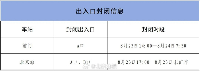 8月21日凌晨,@北京地铁 发布通告: