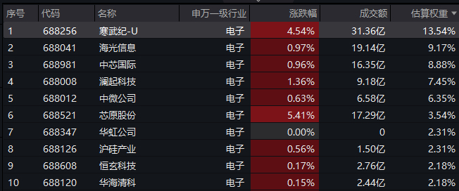 【科创芯片50ETF(588750)标的指数前十大成分股】
