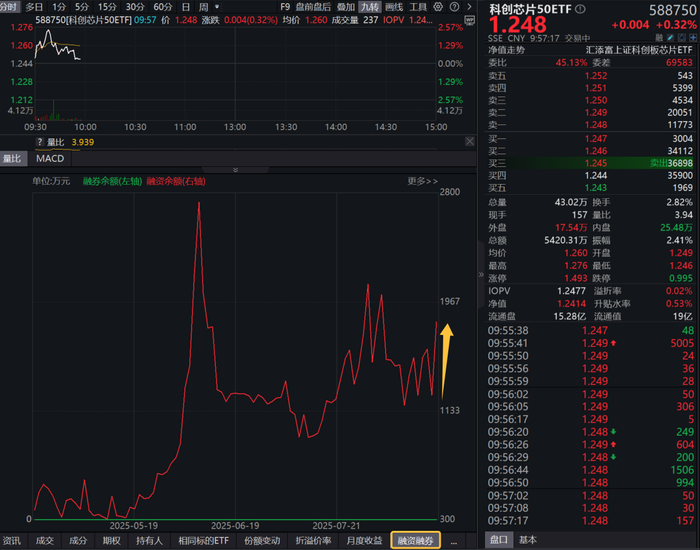 寒武纪暴涨4%站稳千元大关!科创芯片50ETF(588750)早盘振幅迅速超2%,最新融资余额陡增!大行情下,硬科技再成市场主线?
