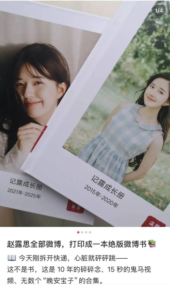 随着赵露思微博被注销,其过往发布的所有原创微博竟被制成“商品”——一批以她微博内容为核心的“赵露思微博书”,近期开始在社交平台广泛推广。