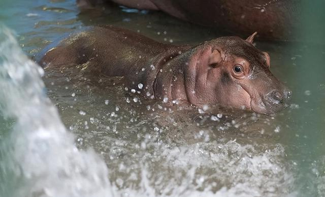 郑州动物园的小河马呆萌呆萌的 快两个月了!再长大一点,就可以断奶吃瓜果蔬菜了