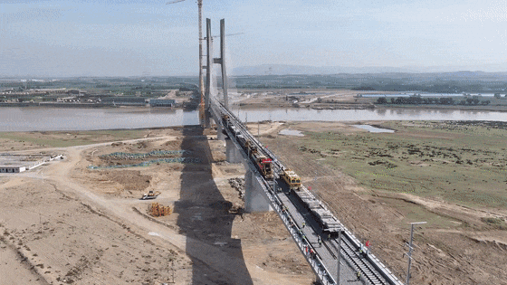 包银高铁乌海黄河特大桥施工现场。来源:中国铁路