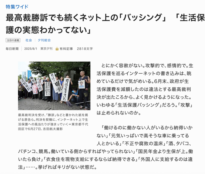 但这件事所造成的影响巨大,以至于日本最高法院于2025年6月27日,首次认定政府下调最低生活补助标准违法,但人们仍在攻击福利制度与弱势群体的懒惰。