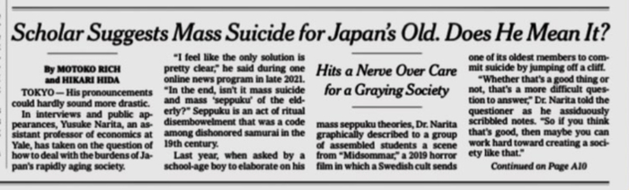 最具代表性的厌老言论,绝对来自耶鲁大学日裔助理教授成田悠辅。