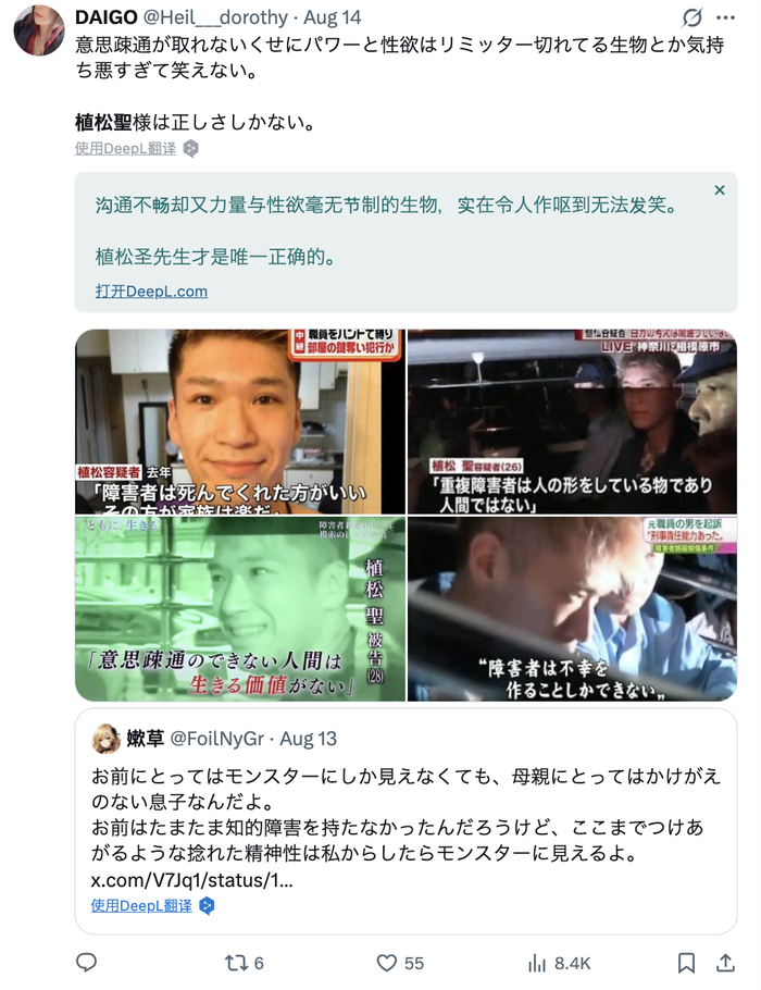 今天,虽然植松圣已经被判处死刑5年,但他在一些日本极端用户心中已经成了某种殉道者的存在。