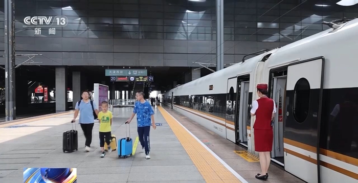目前正值暑运高峰,不少旅客就发现,现在跨区域出行越来越便捷了,铁路飞机可以“无缝衔接”,高铁站毗邻飞机场,甚至还有不少航站楼就设在高铁站里。旅客能享受哪些服务?整个流程是否真的方便?“航站楼”搬进高铁站“高铁+航空”无缝衔接总台央视记者 曹丹:旅客到达天津西站的候车区之后,可以发现在候车区的北侧有一个非常明显的标识,写着北京大兴机场、天津西站的城市航站楼。天津西站城市航站楼暑运前刚刚投入运行,是京津冀地区首个依托国铁建设的城市航站楼,位于天津西站二楼候车厅北侧,开放式的设计与高铁候车区自然融合。东航工作人员:我们这里一天有5趟高铁可以办理行李托运,国内航班的旅客可以到目的地取行李,跟在机场办理的值机手续一样。