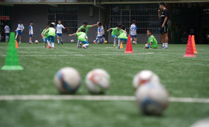 2024年5月31日,在湖北省武汉市江汉区万松园路小学,孩子们在教练指导下进行足球训练。新华社记者 杜子璇 摄武汉的校园足球更是根深叶茂