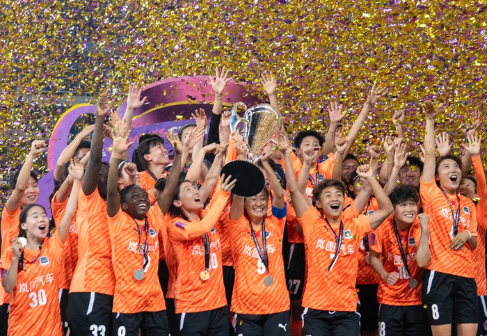 也举起女超联赛冠军奖杯