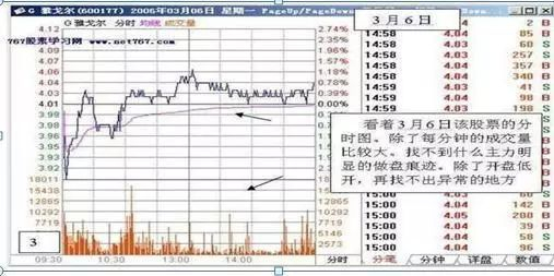 2、分时图上,除了每分钟的成交量比较大,找不到什么主力明显的做盘迹象。