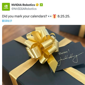 8月24日,英伟达机器人账号在社交平台发布预热推文,“你安排好时间了吗?2025年8月25日。”配图中是一个黑色礼盒,上面是一张写着“好好享受!”、带着黄仁勋签名落款的贺卡。