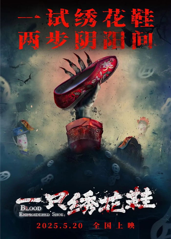 一只带着“魔性”的红色绣花鞋,在新娘的脚上突然不见,“她”先是出现在窗棂上,又从邻居的怀中钻出。新娘穿着一只红色的绣花鞋,游荡在街道上……