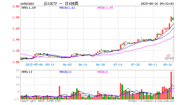 云50ETF(560660)业绩比较基准为中证云计算50指数收益率,管理人为新华基金管理股份有限公司,基金经理为邓岳,成立(2021-08-05)以来回报为76.21%,近一个月回报为30.41%。