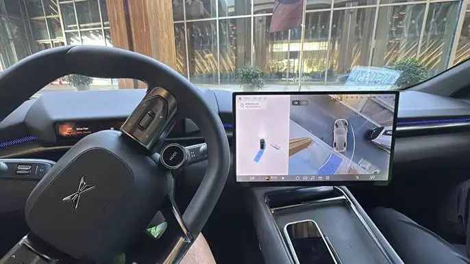 比如,在车里喊“你好,小P”的时候,它就会把头转到声音的来源处,像我坐在主驾位,它就会转到主驾这里,副驾那边也是同理,我在用辅助泊车的时候,它也会把屏幕角度转向主驾位,让我能更方便的去看相关信息,我觉得还是很方便的。