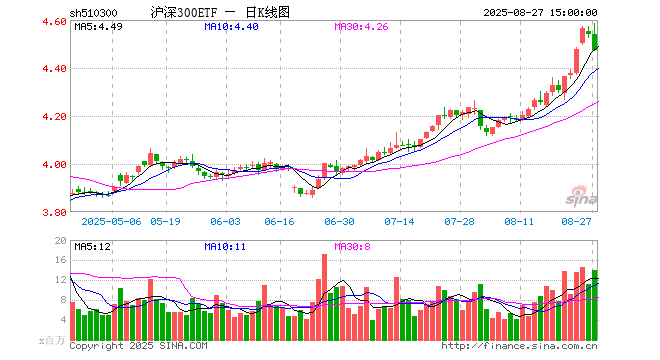8月27日沪深300ETF(510300)份额减少2.46亿份,最新份额915.65亿份,最新规模4099.72亿元