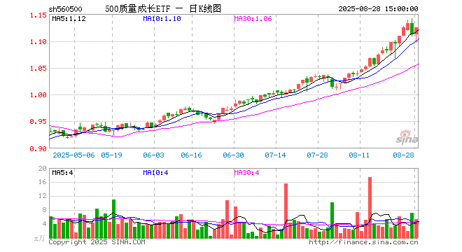 8月28日500质量成长ETF(560500)份额减少400.00万份,最新份额4.40亿份,最新规模4.97亿元