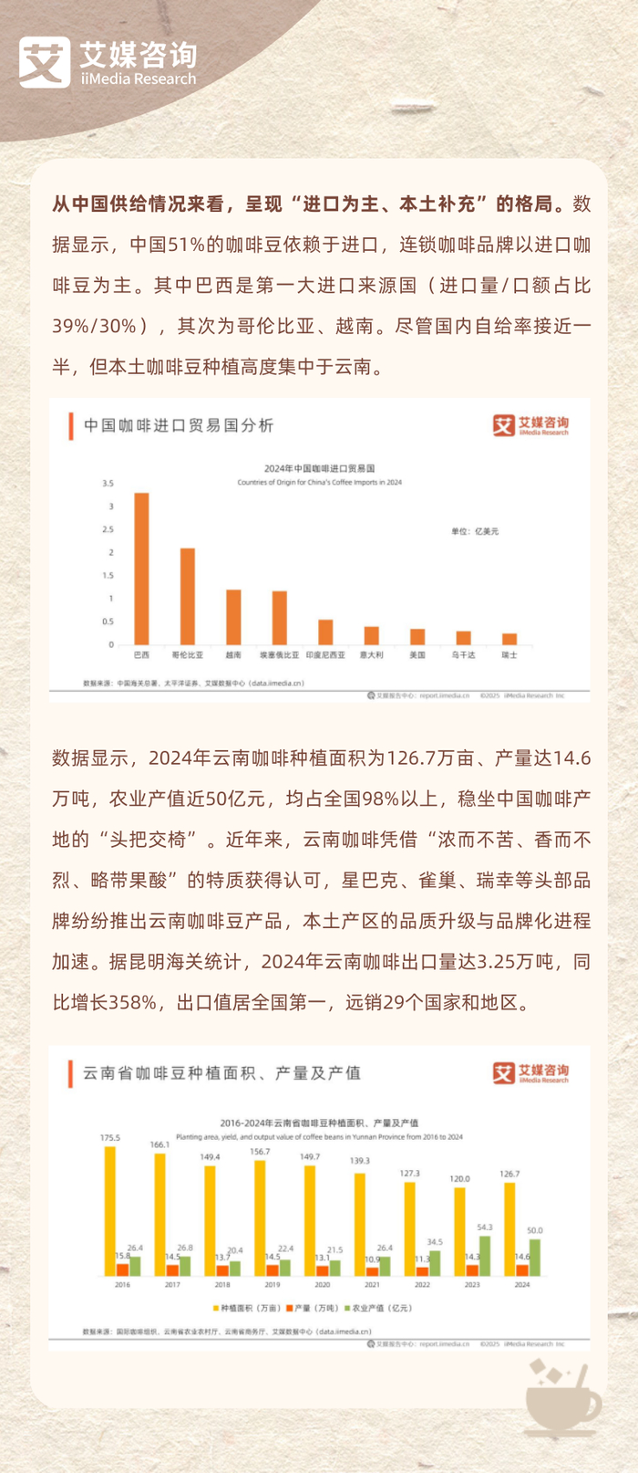 从饮料巨头扎堆布局即饮咖啡赛道,到连锁咖啡品牌门店数量与营收双双高增,再到本土咖啡豆种植与深加工能力逐步提升,一条涵盖“种植-加工-消费”的完整咖啡产业链已在中国成型。
