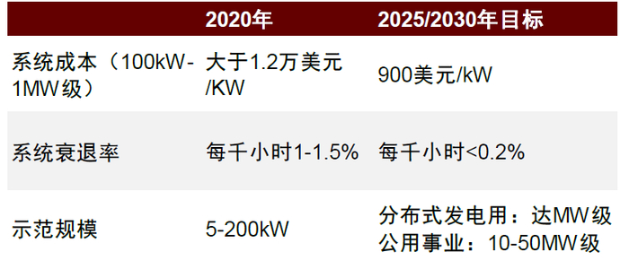 美国能源部固态能量转换联盟(SECA)对SOFC成本制定长期目标,目标到2025/2030年SOFC电堆成本降低到225美元/kW以下,系统成本降低到900美元/kW以下。