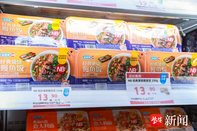 记者逛店发现,升级后的超盒算NB门店基本延续了此前的平价社区超市定位,货架上的自有品牌包装也全部换成了“超盒算NB”,极具辨识度的品牌红蓝色遍布超市的各个角落,十分醒目。