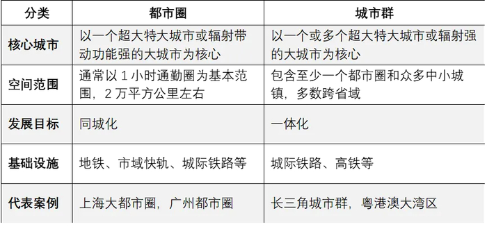 一般而言,中心城市、都市圈、城市群为同心圆结构,一个城市群多数包括几个都市圈。