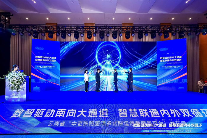 8月29日,由云南省交通运输厅、中车石家庄车辆有限公司主办,中国铁路昆明局集团有限公司等多家单位协办的“中老铁路国际多式联运信息服务平台”发布会在昆明隆重举行。此次发布会以“数智驱动南向大通道,智慧联通内外双循环”为主题,汇聚了云南交通运输厅、云南省发展改革委、昆明海关等有关部门,老挝、泰国驻昆明总领事馆代表,中国铁路昆明局集团及行业协会、物流企业代表等百余位嘉宾,共同见证智慧物流平台正式投入运营。