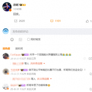 网友在评论区留言:“做不到公平制裁的比赛不打也罢,昕哥我们全运会见!!”