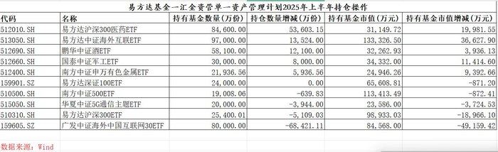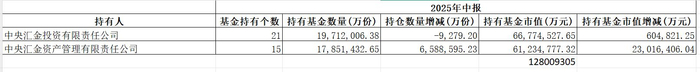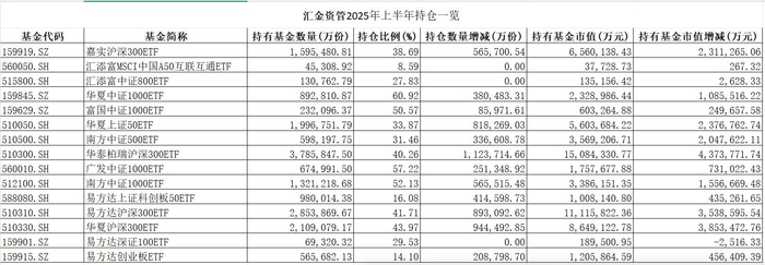 与此同时,随着公募基金2025年半年报的全部披露,中央汇金持仓的ETF账本也全部展现。