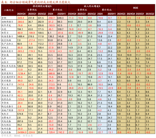 细分行业中,TMT(软件开发、游戏、元件、通信设备、其他电子、半导体、消费电子)、中高端制造(航海装备、地面兵装、军工电子、轨交设备、电机)、部分资源品(普钢、水泥、装修装饰、非金属材料、焦炭),以及动物保健、体育、航空机场、证券、教育、摩托车及其他等行业增速较高。