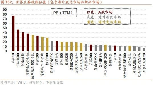 与世界其他主要股市相比,全部A股的估值处于中等偏上水平。