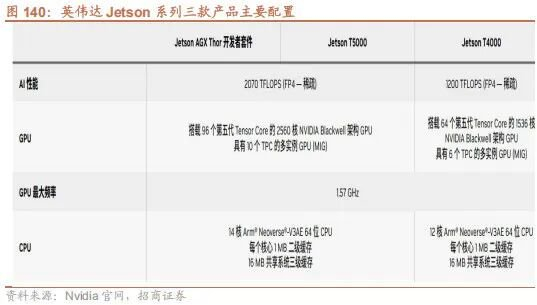 英伟达此次发布的Jetson Thor 产品系列共有三款产品,其主要配置如下: