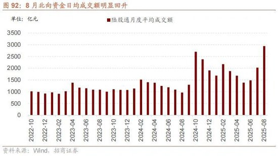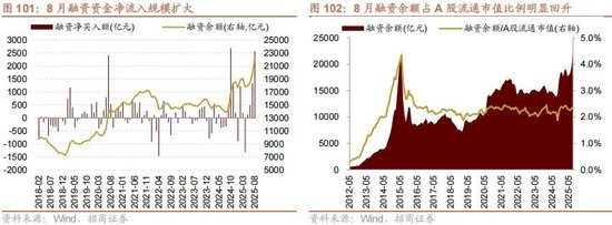 A股换手率、成交额上行。截至8月29日,上证A股换手率五日均值月环比上行0.62个百分点至2.04%;沪深两市日成交额五日均值月环比上行63.1%。