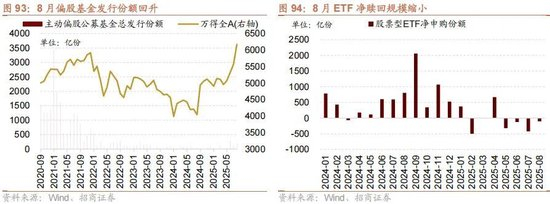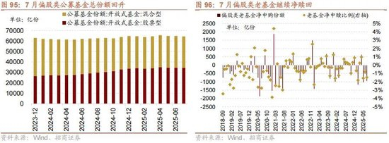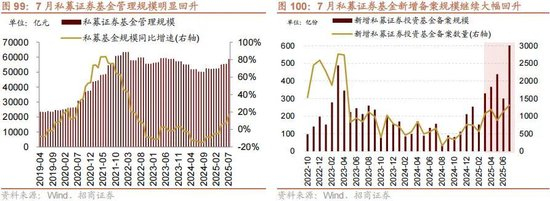 以公私募净值和居民净存款的比值衡量,居民资金通过公私募间接入市仍有相当大的增长空间。截至2025年7月,偏股公私募净值占居民净存款比为19%(历史42%分位),2021年历史最高点曾达到50%左右,当前距离高点仍有30%的潜在增长空间。