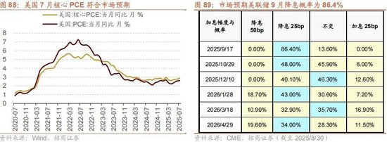 市场对美联储9月降息概率预期升至约90%。若降息落地,将改善全球流动性环境,有利于新兴市场资产表现。若美联储如期降息,可能导致美元贬值,人民币相对升值,增强外资对中国资产的信心,进一步促进外资流入A股和港股市场。