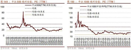 今年八月末中证500指数绝对估值水平为25.5X(处于2010年以来47.6%分位),相比七月末上行1.7X 。