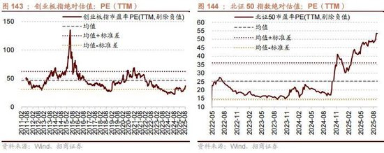 今年八月末北证50指数绝对估值水平为53.4X(处于历史以来99.4%分位),相比七月末上行4.0x。