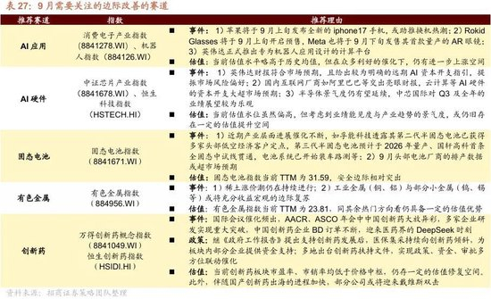 赛道选择层面,9月重点关注五大具备边际改善的赛道: AI应用、AI硬件、固态电池、有色金属、创新药。