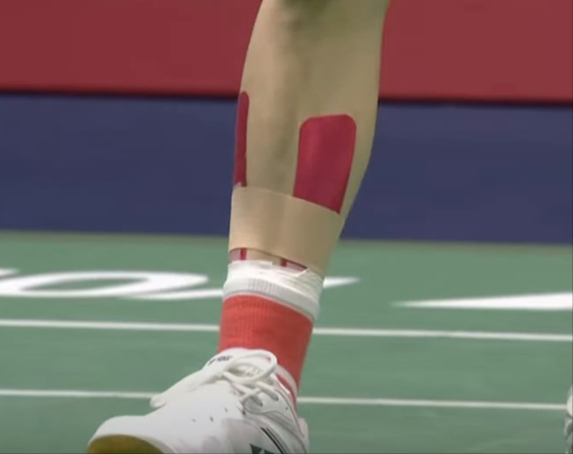 半决赛崴脚坚持到底抢到一张决赛门票,陈雨菲的双脚打了厚厚的绷带固定,出现在决赛场上。
