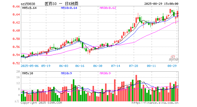 8月29日医药50ETF(159838)份额减少100.00万份,最新份额2.68亿份,最新规模1.73亿元