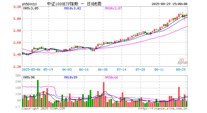 8月29日中证1000ETF指数(560010)份额减少2100.00万份,最新份额114.19亿份,最新规模348.69亿元